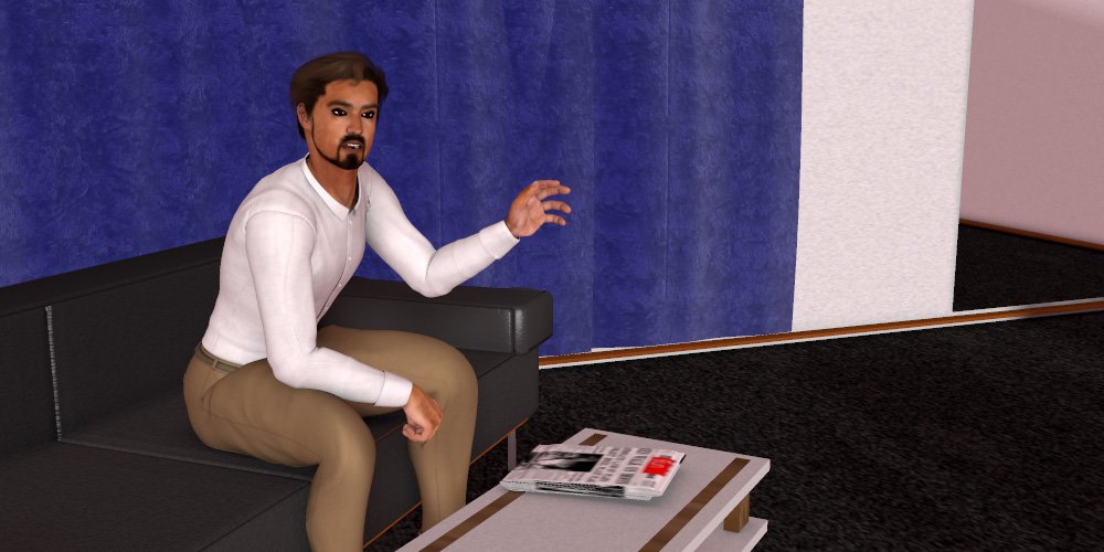 The man on the couch tells the man at the door that the girl had been like a zombie, making the experience disappointing. The man at the door asks the man on the couch if she had been uncooperative or had eaten his brains. The man on the couch shakes his head. The man at the door then reminds the man on the couch that he had been promised nothing more than what he had got. |